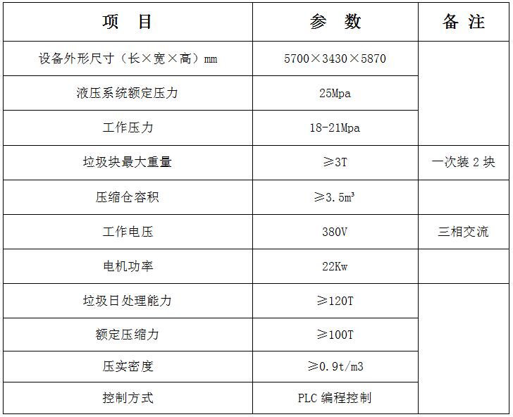 采用垂直壓縮方式,壓縮力大,垃圾塊壓實(shí)密度大。