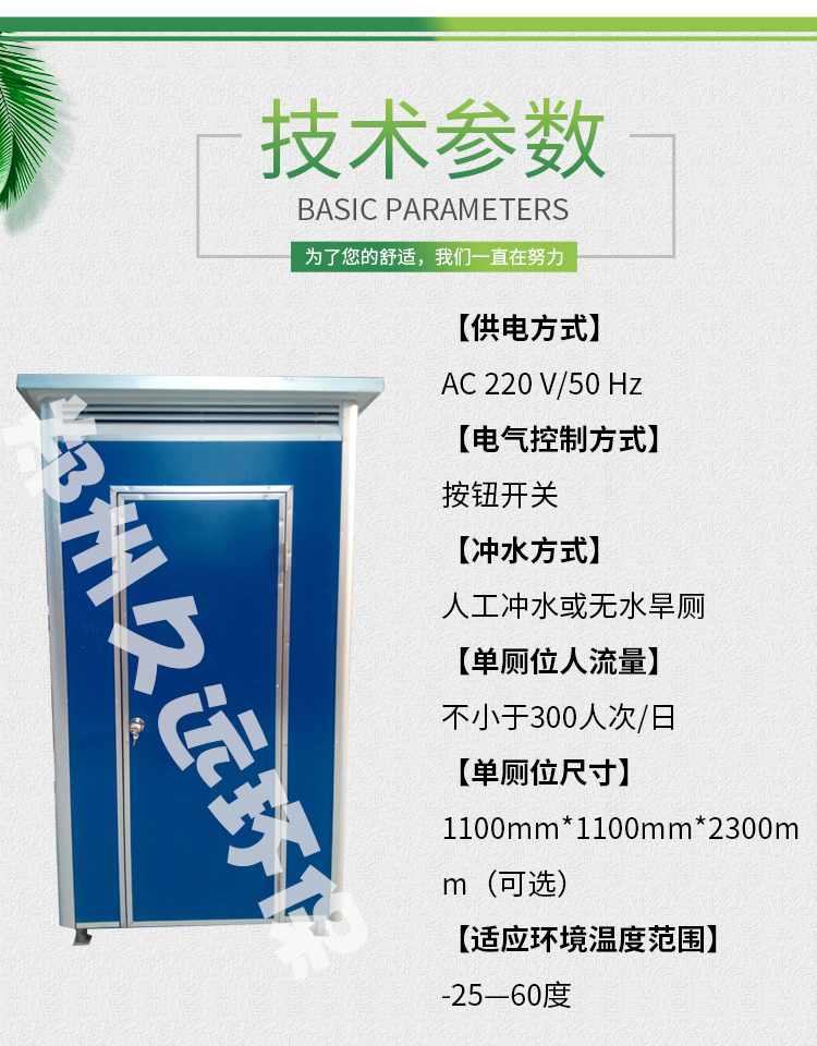 移動(dòng)廁所不受任何工作環(huán)境的限制,外形結(jié)構(gòu)輕巧,顏色搭配合理。