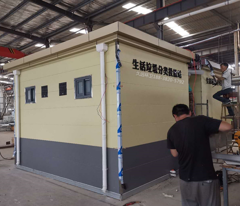 生活垃圾分類(lèi)投放站廠(chǎng)家定制——久遠(yuǎn)環(huán)衛(wèi)是一家集研發(fā)生產(chǎn)、銷(xiāo)售服務(wù)為一體的大型環(huán)衛(wèi)設(shè)備生產(chǎn)企業(yè),公司注冊(cè)資金5000萬(wàn)元,占地面積50余畝,擁有現(xiàn)代化生產(chǎn)車(chē)間1萬(wàn)余平方米,辦公面積1000余平方米,在職員工200多人,具有雄厚的技術(shù)及生產(chǎn)實(shí)力。 公司主要生產(chǎn)垃圾壓縮中轉(zhuǎn)站、垃圾分類(lèi)收集房、環(huán)保移動(dòng)公廁、各類(lèi)垃圾桶果皮箱、環(huán)衛(wèi)工具箱、環(huán)衛(wèi)道班房、崗?fù)?、休閑座椅、等公共環(huán)衛(wèi)設(shè)施。
